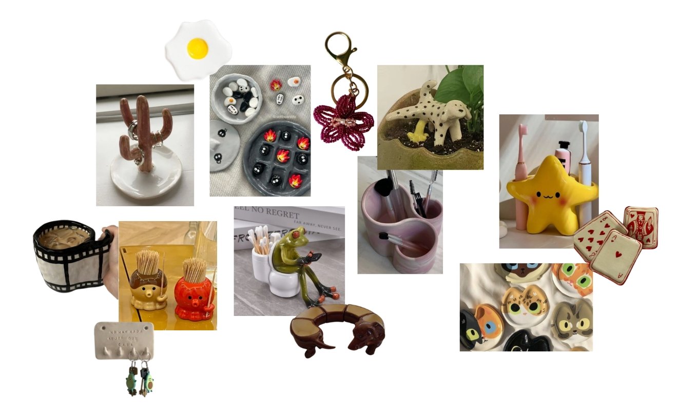 Les créations en argile artisanales présentées ici illustrent l’univers créatif de l’atelier. Chaque pièce est façonnée à la main, avec une attention particulière portée aux formes, aux textures et aux finitions.